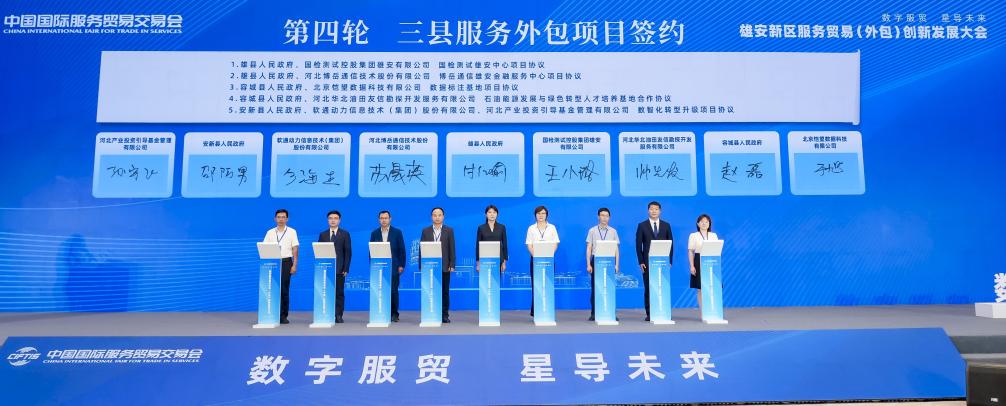 9月12日,雄安新区三县服务外包项目签约现场。 中国(河北)自由贸易试验区雄安片区管理委员会供图