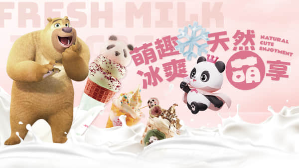 熊出没家族与panda queen原叶鲜萃茶源于自然,热爱自然,我们的冰淇淋每一口都带着山间田野阳光的味道。